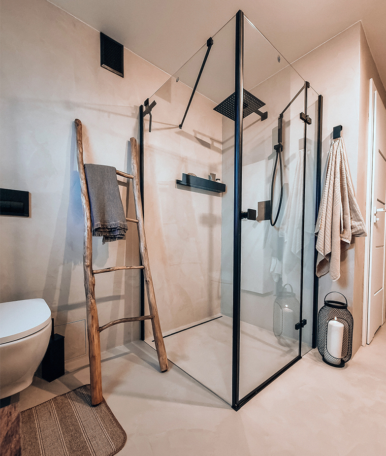 Ein weiterer Vorteil ist die effiziente Umsetzung des Projekts. Während die Installation von Fliesen oft mehrere Tage in Anspruch nimmt und eine präzise Verfugung erfordert, lässt sich Mikrozement in wenigen Stunden auftragen und trocknen. Dies minimiert nicht nur die Störzeiten im Badezimmer, sondern ermöglicht auch eine schnellere Nutzung der Dusche nach der Fertigstellung.